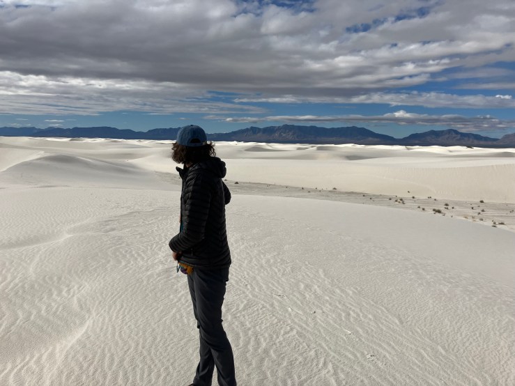 Even the slightest words can astound: consider “scored,” as in “An instrument is scored for my measure. That is, it tells me what to look for.” I find this book to be such an instrument, and I am delighted to learn what I must look for—as, for instance, in the desert, to look for the sand, the particularity. The abstracted beauty of a place and a way of seeing the place are among the triumphs of Krumrie’s view, her poetics of the immeasurable astonishments of being fully in a desert, a place, a world. In the end, measureless.
